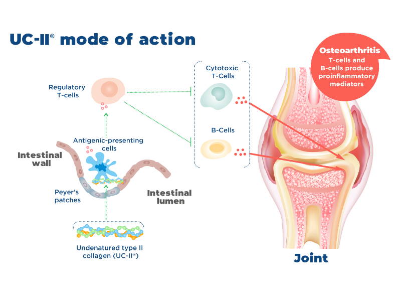 As a result, UC-II®triggers regulatory immune cells called T-Cells. These T-cells release anti-inflammatory molecules called cytokines, which help prevent cartilage collagen from breaking down.