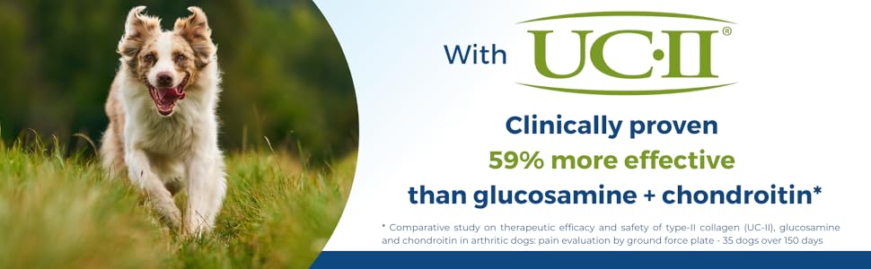 Several studies showed that UC-II® is 59% more effective than chondroitin and glucosamine in relieving dogs from pain and discomfort.