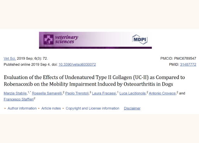 After 30 days, results in mobility improvement and pain reduction were similar between UC-II® and Robenacoxib (anti-inflammatory medication)