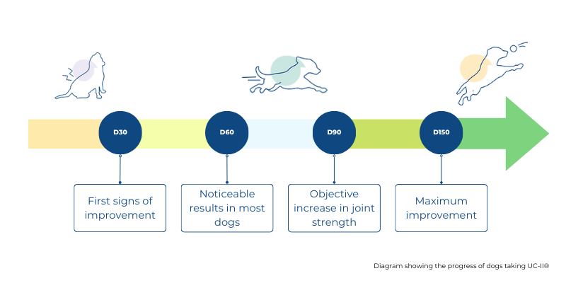 A study on 35 dogs showed that UC-II® could reduce joint pain and discomfort by up to 81%.