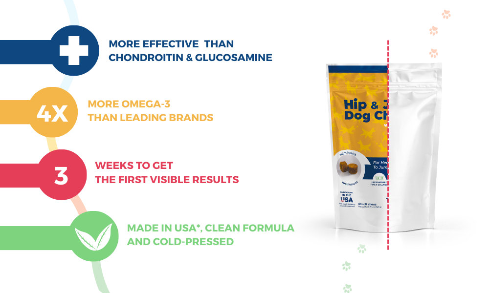 Several studies showed that UC-II® is 59% more effective than chondroitin and glucosamine in relieving dogs from pain and discomfort.